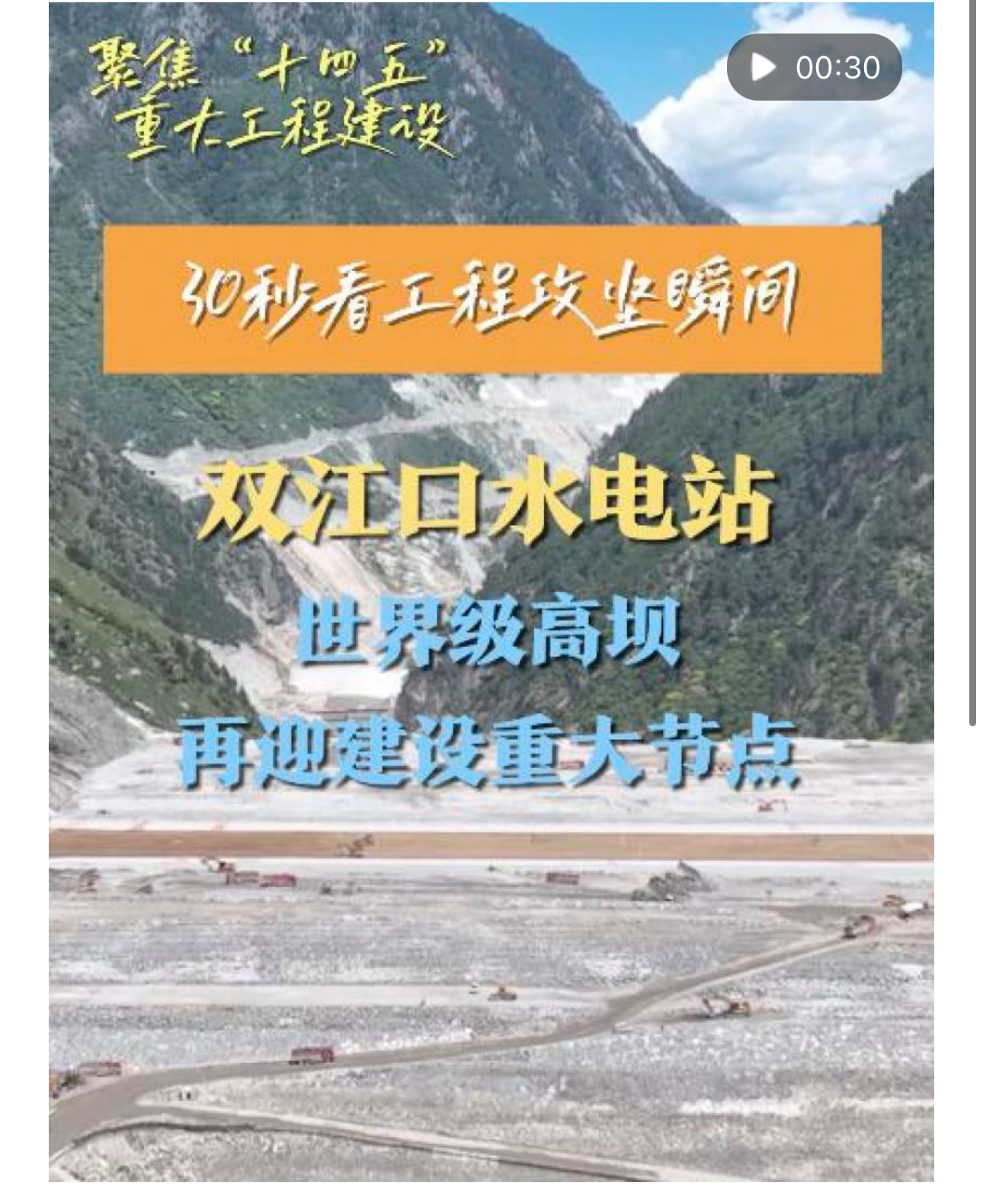 新華社:30秒看工程攻堅瞬間|雙江口水電站:世界級高壩再迎建設(shè)重大節(jié)點