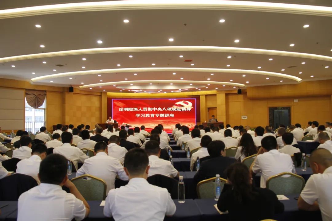 為深入學(xué)習(xí)貫徹習(xí)近平總書記關(guān)于加強(qiáng)黨的作風(fēng)建設(shè)的重要論述和中央八項(xiàng)規(guī)定及其實(shí)施細(xì)則精神,推動學(xué)習(xí)教育走深走實(shí),5月7日下午,公司舉辦深入貫徹中央八項(xiàng)規(guī)定精神學(xué)習(xí)教育專題講座,邀請中央黨校(國家行政學(xué)院)政法部教授舒紹福作專題輔導(dǎo)。公司黨委書記、董事長黃海濤主持講座并講話。 舒紹福結(jié)合自己的學(xué)習(xí)和研究,以《深入學(xué)習(xí)貫徹中央八項(xiàng)規(guī)定精神》為題,從“深刻理解中央八項(xiàng)規(guī)定精神的重大意義” “準(zhǔn)確把握中央八項(xiàng)規(guī)定精神的核心要義” “全面落實(shí)中央八項(xiàng)規(guī)定精神的實(shí)踐路徑”三個(gè)方面,按照理論與實(shí)踐相貫通、歷史和現(xiàn)實(shí)相關(guān)聯(lián)的寬廣視角,深入淺出地闡釋為什么要抓好作風(fēng)建設(shè)、怎樣抓好作風(fēng)建設(shè)這一重要論題,為廣大黨員干部深入理解和貫徹落實(shí)中央八項(xiàng)規(guī)定精神提供了重要指導(dǎo)。 黃海濤就認(rèn)真貫徹落實(shí)中央八項(xiàng)規(guī)定精神提出三點(diǎn)要求:一要深學(xué)細(xì)悟習(xí)近平總書記關(guān)于加強(qiáng)黨的作風(fēng)建設(shè)重要論述,以理論清醒筑牢政治忠誠。提高政治站位,以黨的創(chuàng)新理論凝心鑄魂,持續(xù)推動公司作風(fēng)建設(shè)常態(tài)化長效化,以實(shí)際行動堅(jiān)定擁護(hù)“兩個(gè)確立”,堅(jiān)決做到“兩個(gè)維護(hù)”。二要準(zhǔn)確把握新時(shí)代作風(fēng)建設(shè)的新形勢新要求,以刀刃向內(nèi)破除頑瘴痼疾。始終保持作風(fēng)建設(shè)永遠(yuǎn)在路上的清醒和堅(jiān)定,一以貫之堅(jiān)持嚴(yán)的基調(diào)、嚴(yán)的措施、嚴(yán)的氛圍,以作風(fēng)建設(shè)的新成效為公司高質(zhì)量發(fā)展?fàn)I造良好氛圍。三要堅(jiān)決落實(shí)學(xué)習(xí)教育各項(xiàng)工作部署要求,以系統(tǒng)思維深化作風(fēng)建設(shè)。以學(xué)習(xí)教育為契機(jī),推動作風(fēng)建設(shè)與中心工作深度融合,堅(jiān)持學(xué)習(xí)教育和推動發(fā)展“兩手抓、兩促進(jìn)”,確?!笆奈濉备黜?xiàng)目標(biāo)任務(wù)圓滿收官。 黃海濤強(qiáng)調(diào),各級黨組織要按照學(xué)習(xí)教育重點(diǎn)工作安排,堅(jiān)持學(xué)查改一體推進(jìn),融入日常、抓在經(jīng)常,推動公司上下形成學(xué)深悟透、真信篤行的濃厚氛圍。領(lǐng)導(dǎo)干部要帶頭學(xué)習(xí),做好表率,身體力行,形成“頭雁效應(yīng)”,帶動廣大黨員干部立足崗位,準(zhǔn)確領(lǐng)會中央八項(xiàng)規(guī)定及其實(shí)施細(xì)則精神的核心要義、實(shí)踐要求。改進(jìn)學(xué)風(fēng),嚴(yán)實(shí)作風(fēng),堅(jiān)決扛起政治責(zé)任,把學(xué)習(xí)教育牢牢抓在手上,力戒形式主義,以好作風(fēng)保證學(xué)習(xí)教育取得好效果,真正做到學(xué)以致用,為推動公司高質(zhì)量發(fā)展保駕護(hù)航。 在昆公司領(lǐng)導(dǎo),高管、副總師,各基層黨組織負(fù)責(zé)人,中層副職及以上黨員干部,生產(chǎn)經(jīng)營管理機(jī)構(gòu)全體黨員,公司黨建、組織、紀(jì)委等工作部門全體人員參會。 |